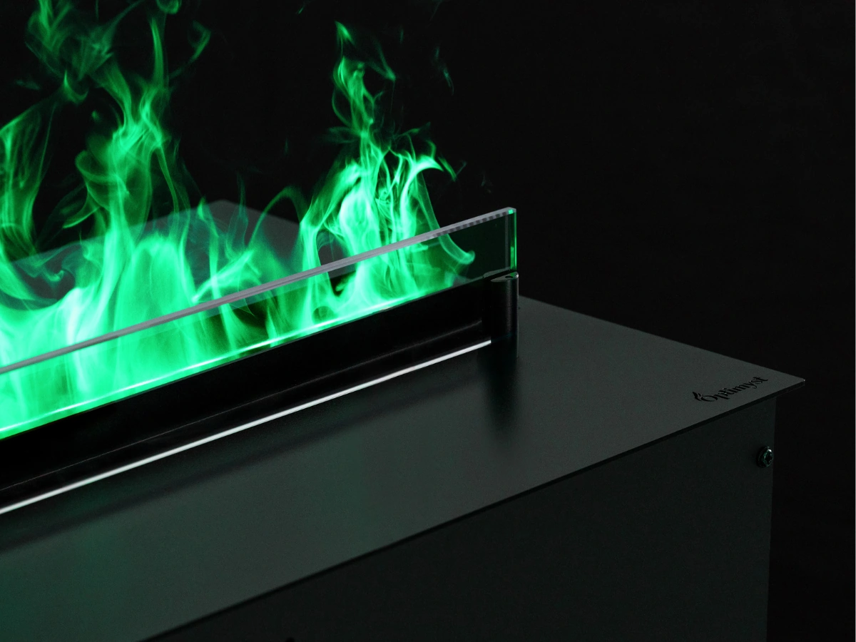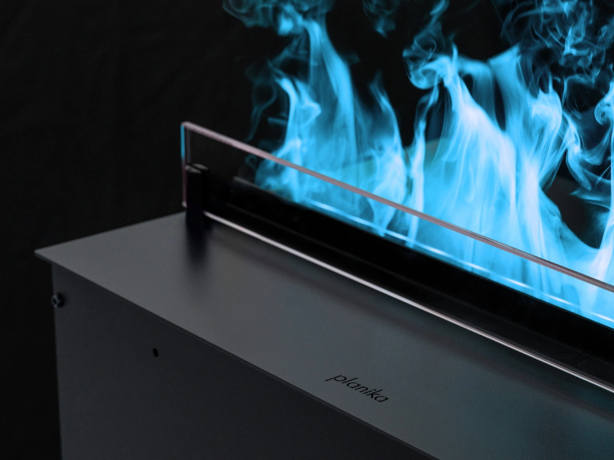 Der Planika Cool Flame Pro Insert ist ein linearer Wasserdampf-Kamineinsatz mit Optimyst®-Technologie. Ultrafeiner Wassernebel wird von ActiveLED-Licht angestrahlt und erzeugt eine dreidimensionale, kühle Flamme – ganz ohne Hitze, Rauch oder Schornstein. Dank Direktanschluss an die Wasserleitung läuft der Einsatz dauerhaft, ohne dass ein Wassertank täglich nachgefüllt werden muss.