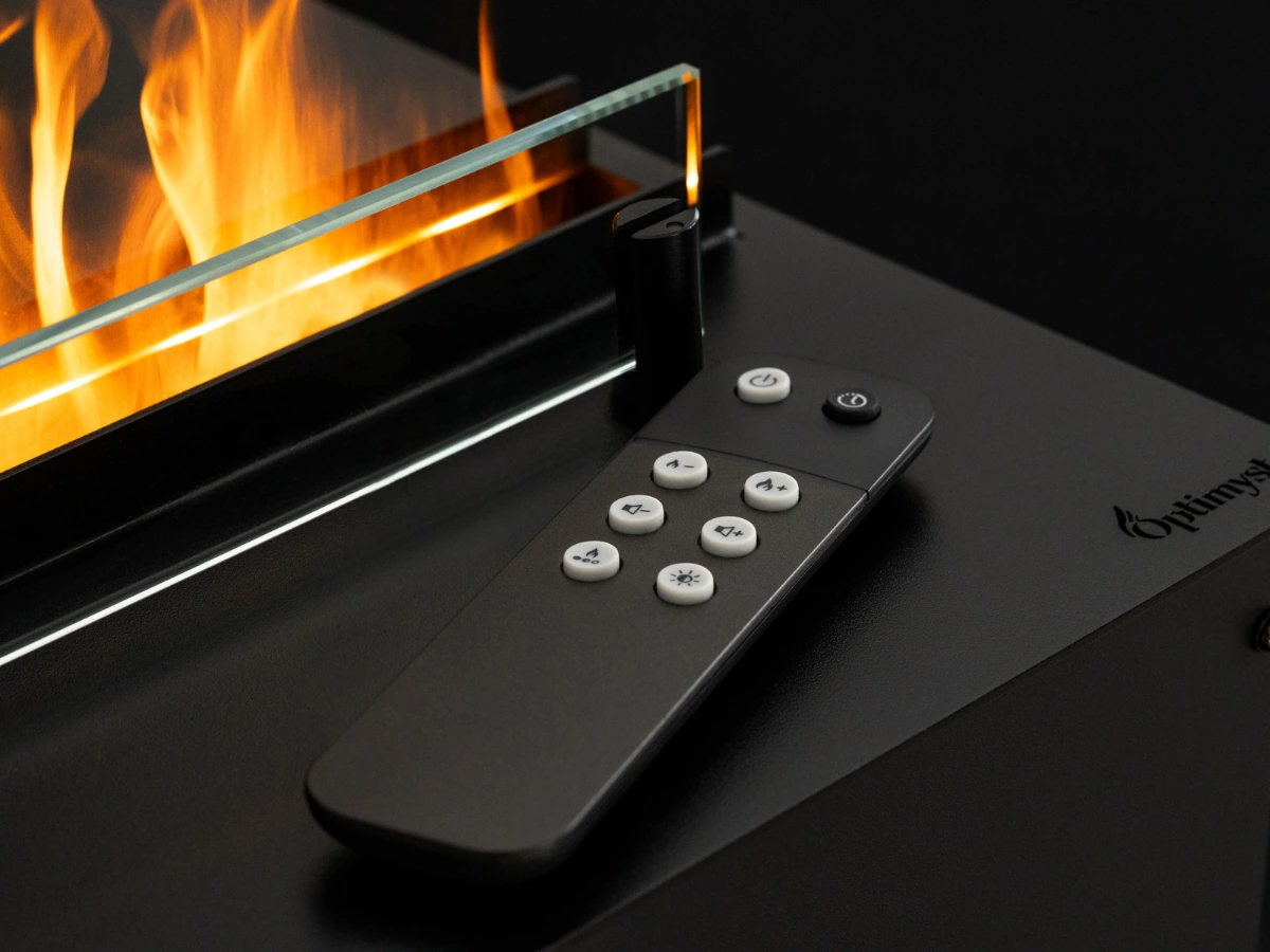 Gesteuert wird der Cool Flame Pro bequem per Fernbedienung oder Mobile App. Du kannst die Flammenhöhe in 6 Stufen regulieren, die Flammenfarbe anpassen und so den Effekt ohne Unterbrechung direkt von Sofa, Tresen oder Empfang aus steuern.