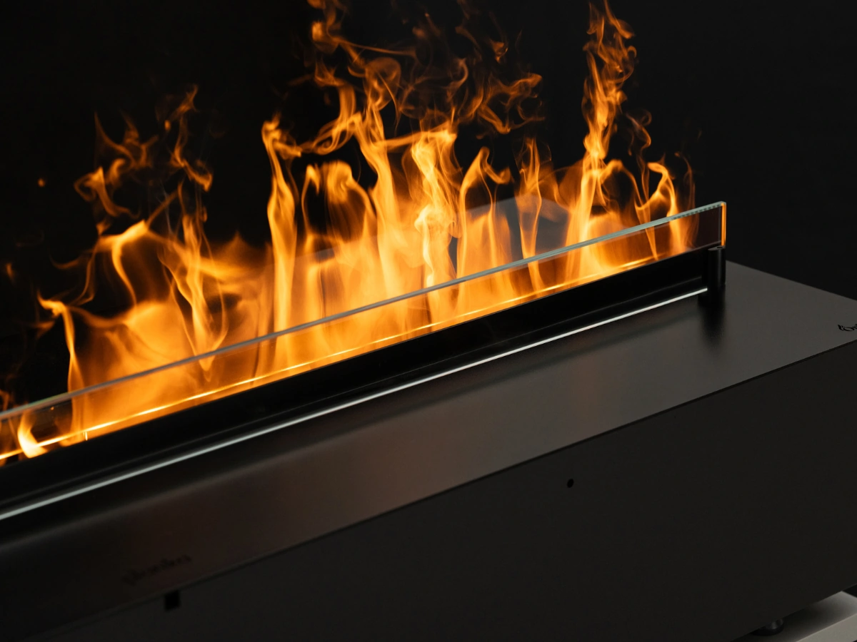 Der Cool Flame Pro Einsatz nutzt ein Ultraschall-Element, um Wasser in feinen Nebel zu verwandeln. Dieser Wasserdampf wird von einem ActiveLED-System und optischen Linsen mehrdimensional beleuchtet und erzeugt so ein sehr realistisches, tiefes Flammenbild. Da es sich nur um Wassernebel handelt, entsteht keine Hitze und keine Emission – ideal für moderne Innenräume, Projekte mit strengen Auflagen oder hochfrequentierte Bereiche wie Lobbys und Lounges.