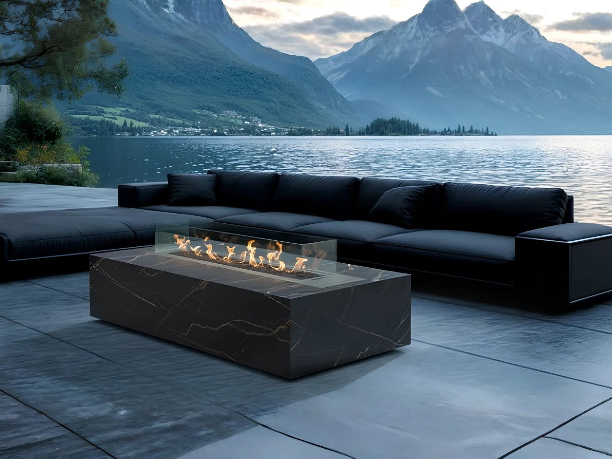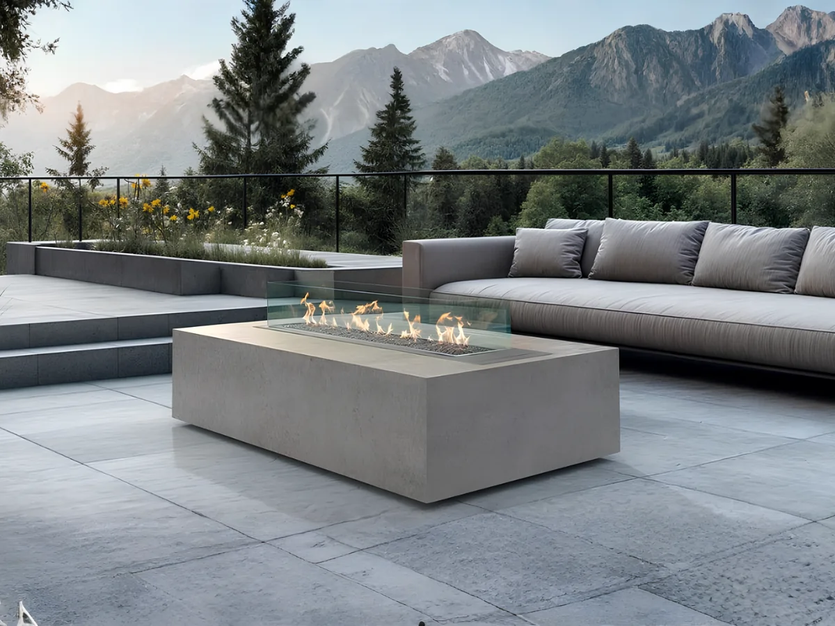 Der Korpus ist kein Deko-Tischchen, sondern ein massiver Feuerblock auf integrierten Rollen. Du kannst den Kamin also neu positionieren (Lounge-Ecke, Dining-Ecke, Wintergarten) ohne Umbau, ohne Gasleitung, ohne Abzug. Ideal für wechselnde Terrassen-Layouts, Events oder saisonale Umgestaltung.