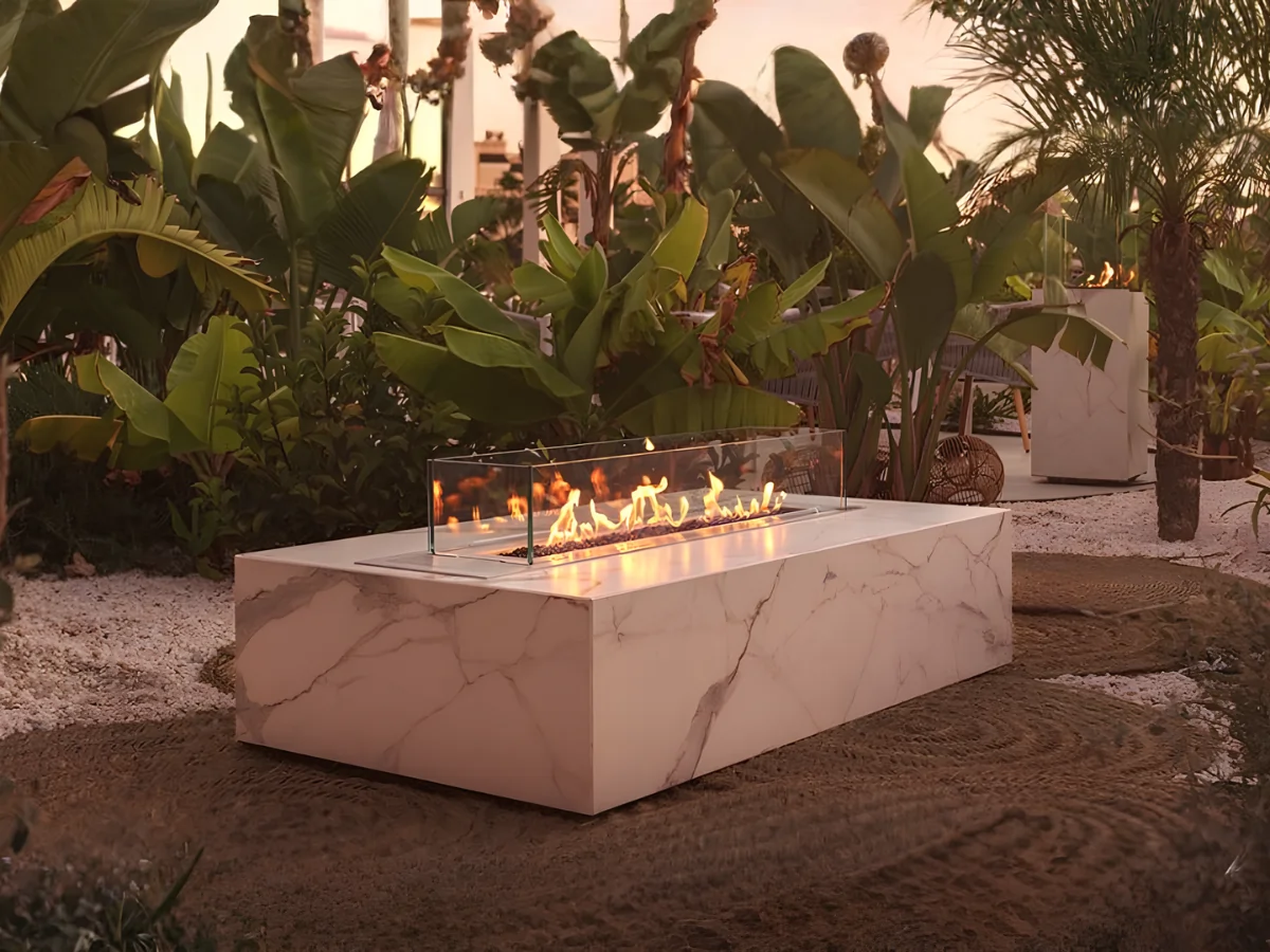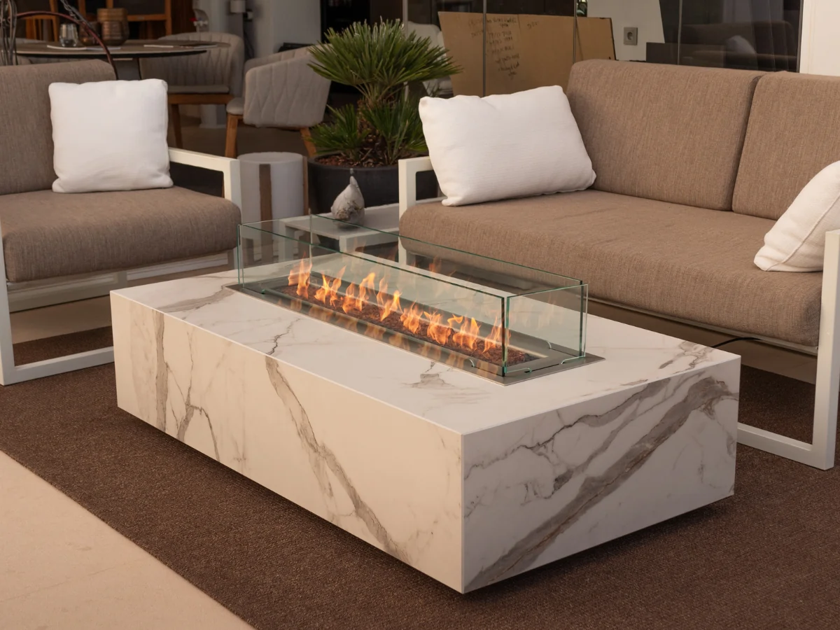 Cabo Table ist so gebaut, dass du ihn drinnen nutzen kannst – aber auch draußen auf der Terrasse / im überdachten Sitzbereich. Das gehärtete Rundum-Schutzglas schirmt die Flamme gegen Windverwirbelungen ab, die Elektronik ist für den Außeneinsatz ausgelegt, und die massive Verkleidung ist auf Temperaturbeständigkeit sowie Witterungs-Resistenz ausgelegt.