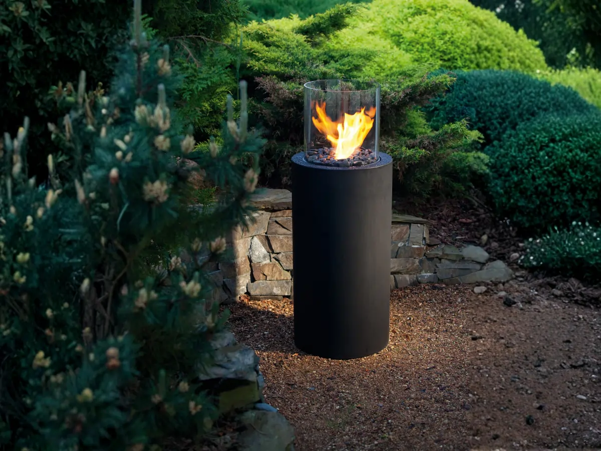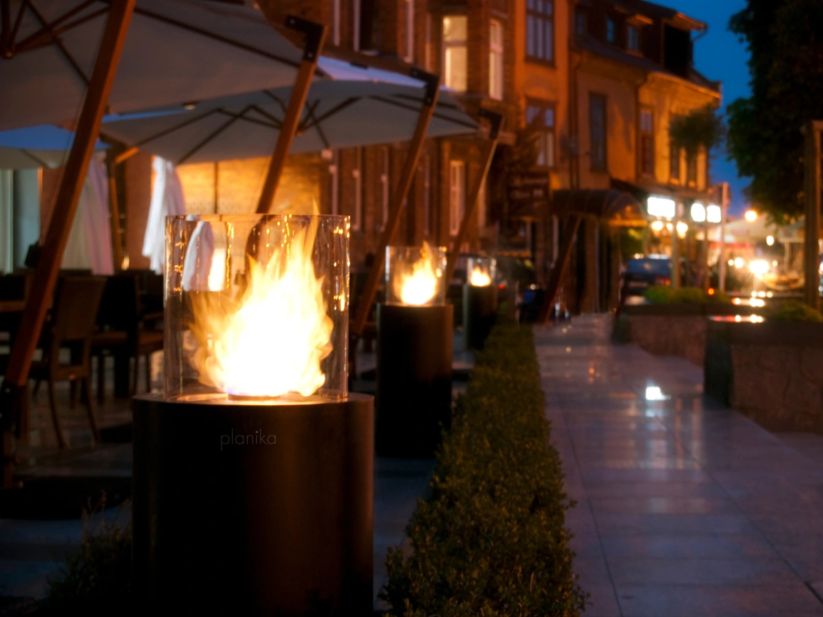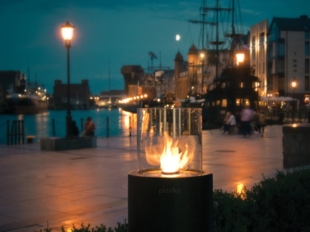 Der Planika Totem Commerce ist eine elegante Feuersäule mit echter Flamme – perfekt für Terrassen, Gärten, Lounge- und Gastrobereiche. Das schlanke, schwarze Säulengehäuse (Polystone / Kunststein) trägt einen zylindrischen Glaskamin; innen brennt reines Bioethanol sauber und ohne Rauch, Ruß oder Funkenflug. Kein Schornstein, kein Gasanschluss, keine feste Installation nötig. Einfach hinstellen, befüllen, anzünden.