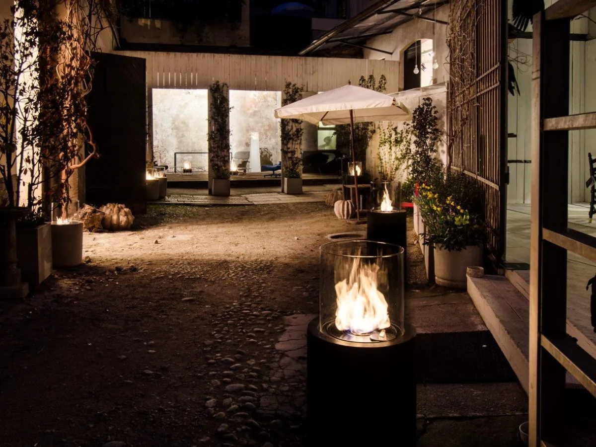 Im Inneren des Brenners befindet sich ein hoch absorbierender Kern. Diese sogenannte Commerce-Technologie verhindert, dass flüssiger Brennstoff frei im Brenner „schwappt“ oder beim Umkippen ausläuft. Das macht Totem besonders interessant für gewerbliche Flächen wie Bars, Außenlounges, Rooftops oder Hoteleingänge.