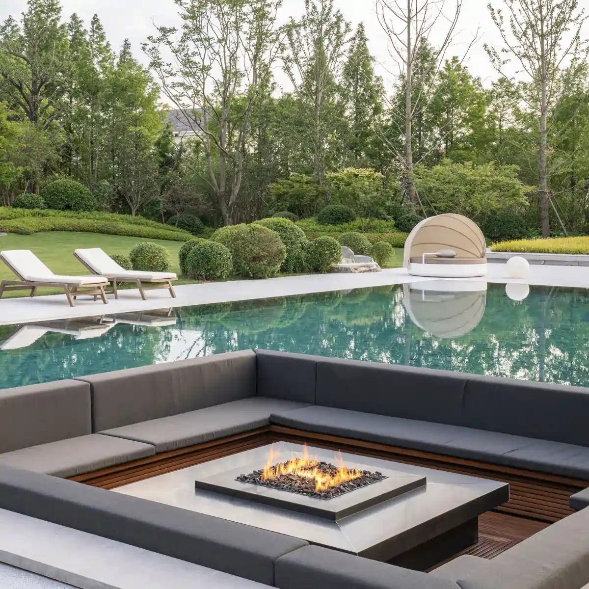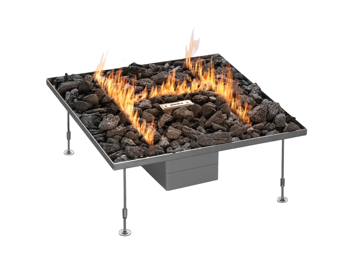 Der Einsatz wird bündig in Ihren eigenen Feuertisch, eine gemauerte Feuerstelle, einen Raumteiler im Außenbereich oder sogar in eine Outdoor-Küche integriert. Mehrere Module lassen sich nebeneinander setzen, um größere Feuerlinien oder zonierte Flächen zu gestalten. Sie entscheiden komplett über Material, Verkleidung und Look – der Einsatz liefert die Flamme.