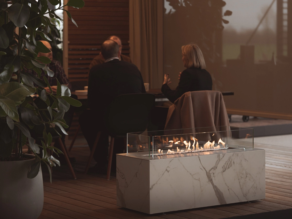 Echtes Feuer ohne Schornstein: Der automatische Bioethanol-Kamin Cabo nutzt die BEV®-Technologie und liefert stimmungsvolles Kaminfeuer im Wohnraum, Wintergarten, Hotel-Lobby oder auf der Terrasse – ganz ohne Rauch, Ruß oder Asche. 6 Flammenstufen, bis zu 15 h Laufzeit aus dem 10,5 L Tank und eine Heizleistung von bis zu 9,4 kW sorgen für Komfort und kräftige Wärme – indoor wie outdoor.