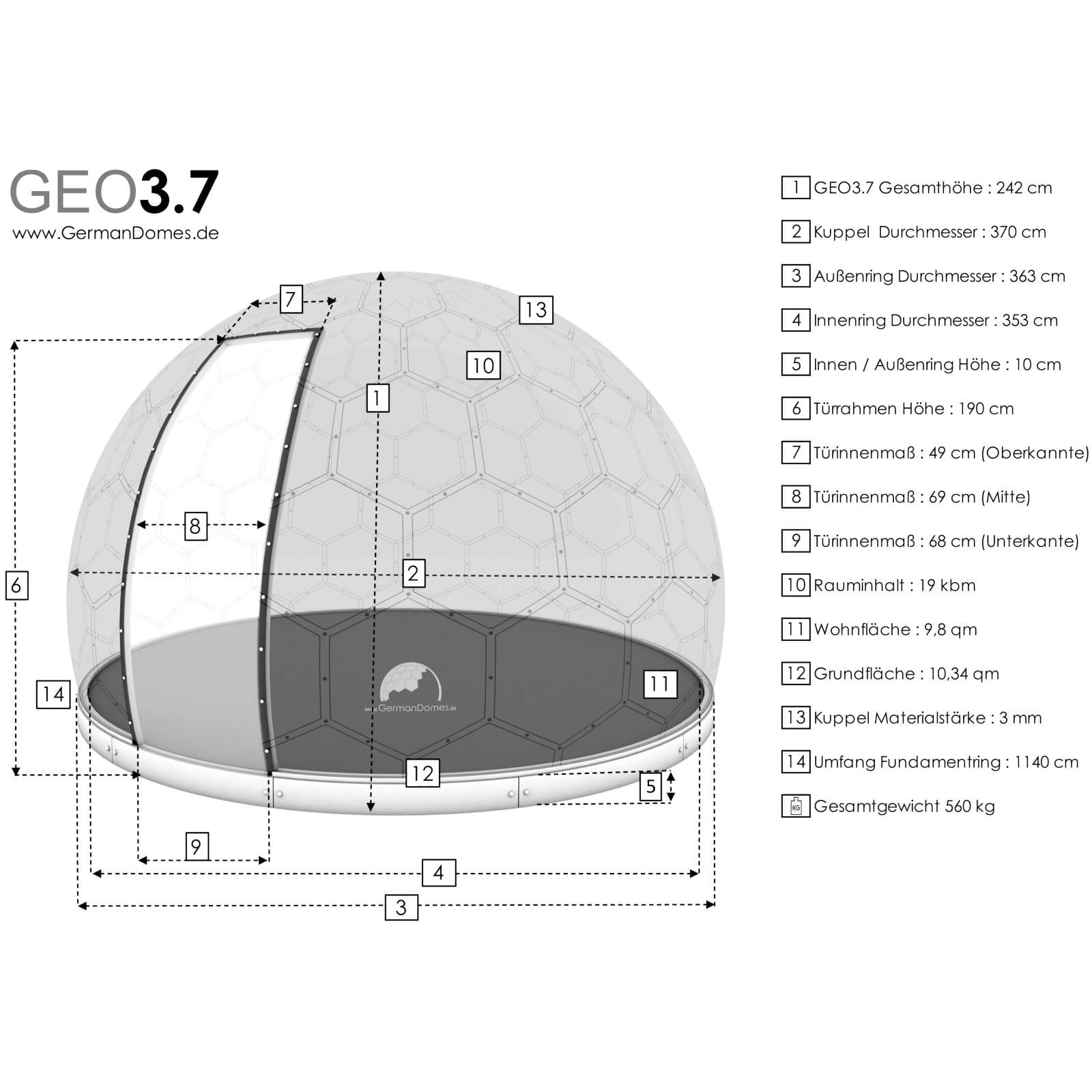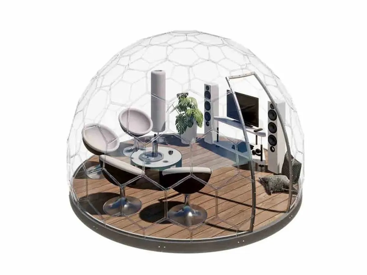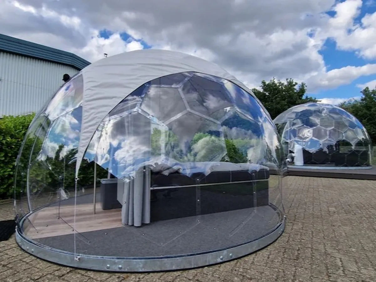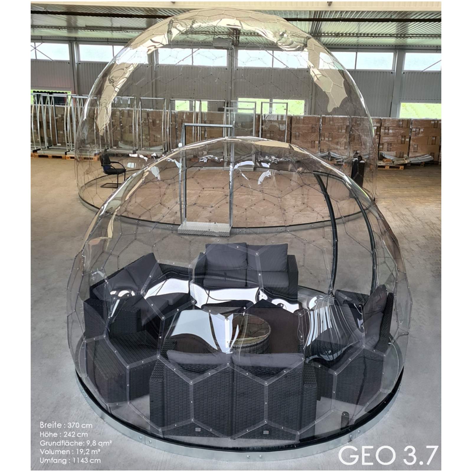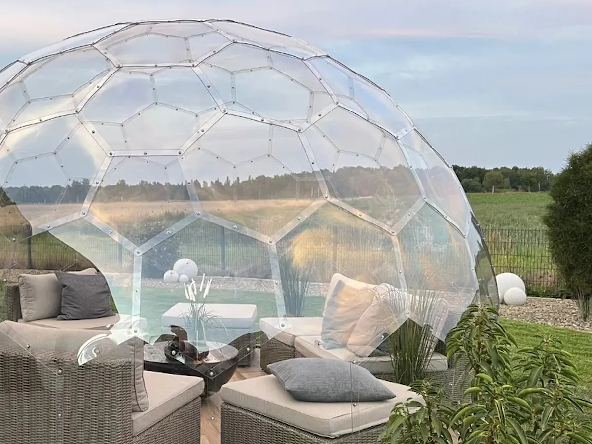 GermanDome GEO3.7 innovativer geodätischer transparenter Kuppelbau aus Makrolon