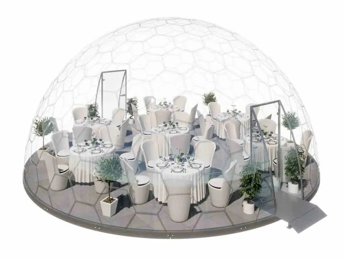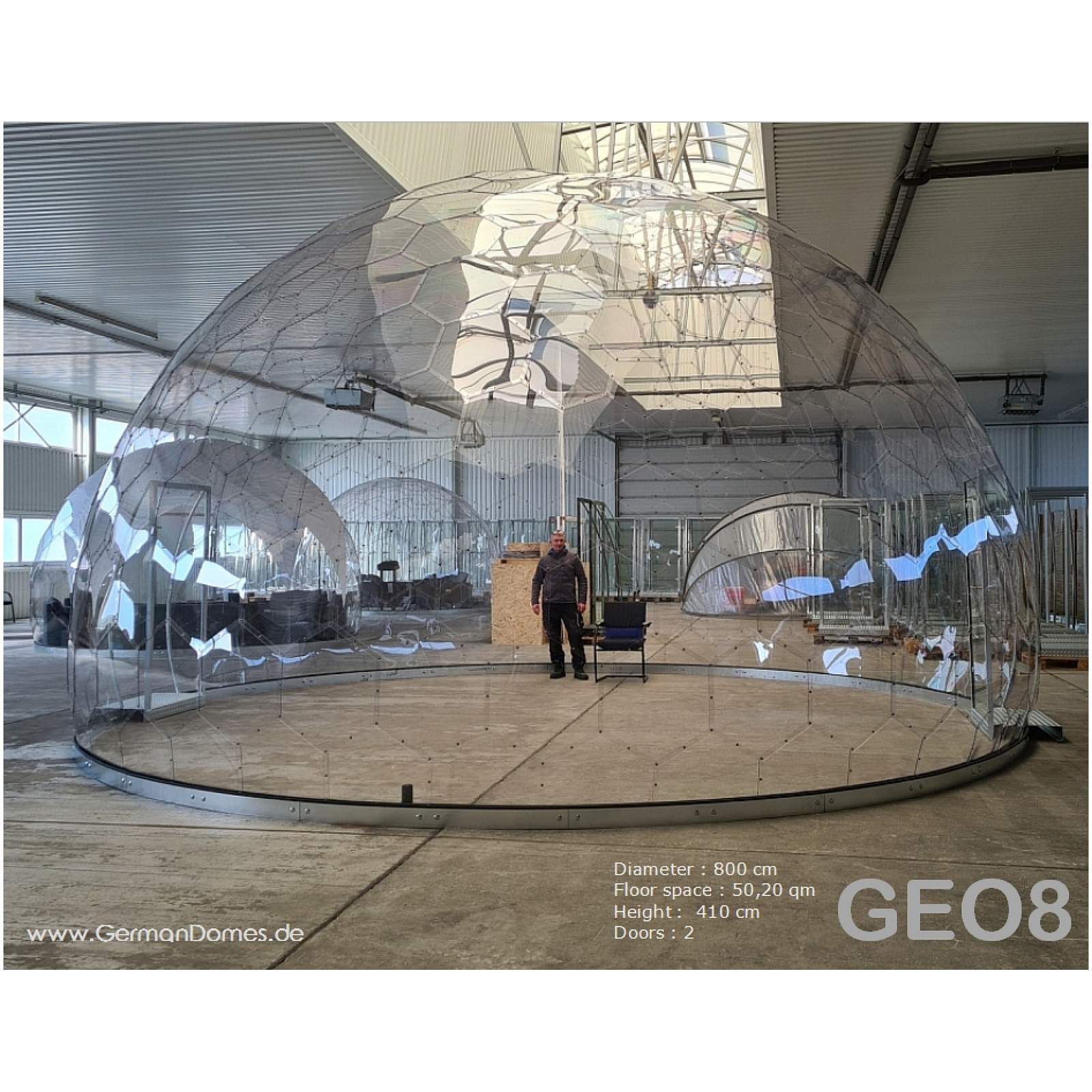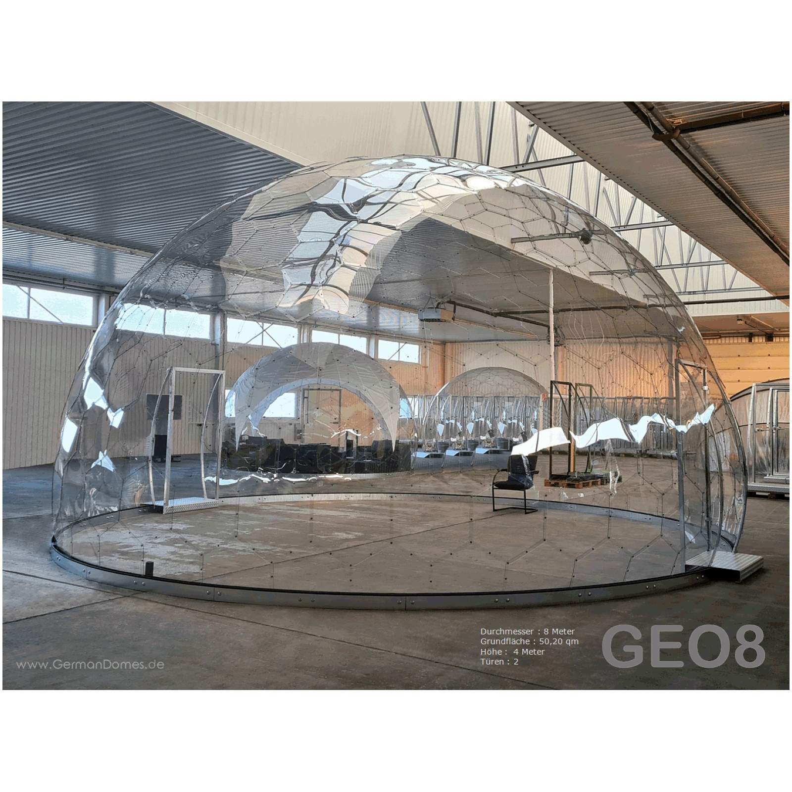GermanDome GEO8 innovativer geodätischer transparenter Kuppelbau aus Makrolon