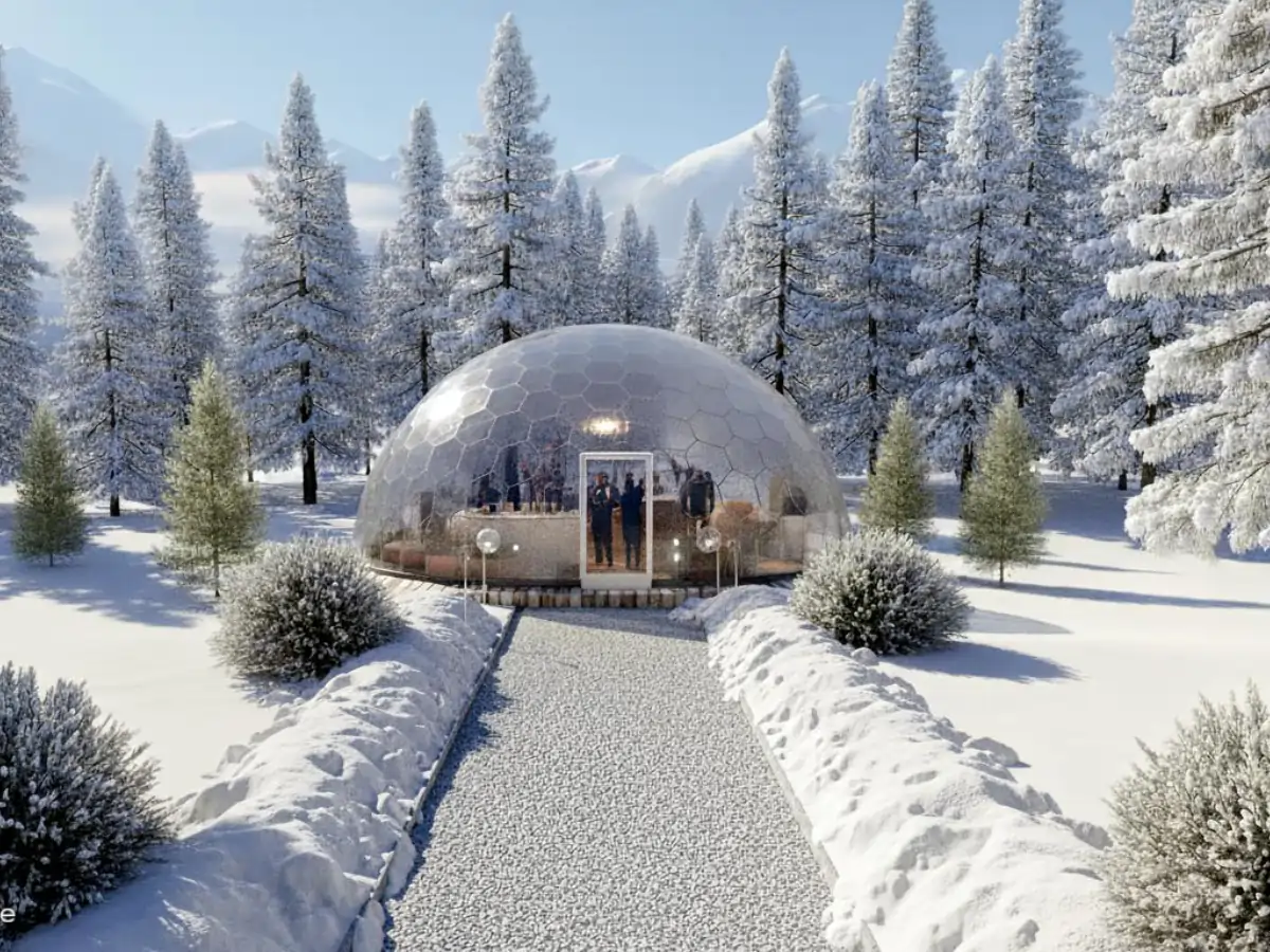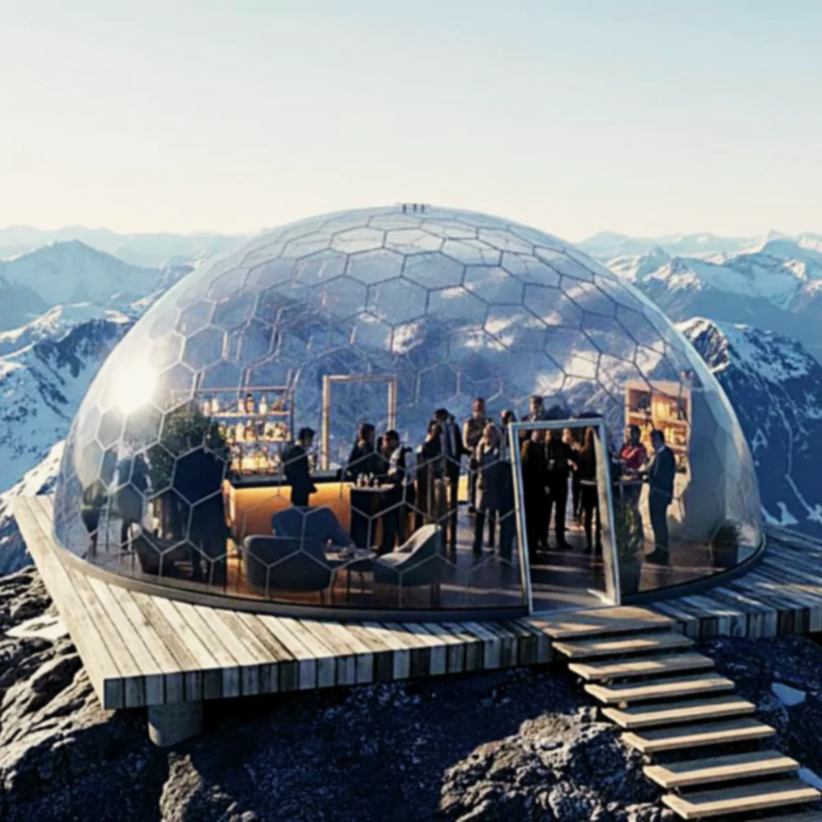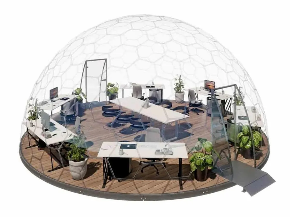 GermanDome GEO8 innovativer geodätischer transparenter Kuppelbau aus Makrolon