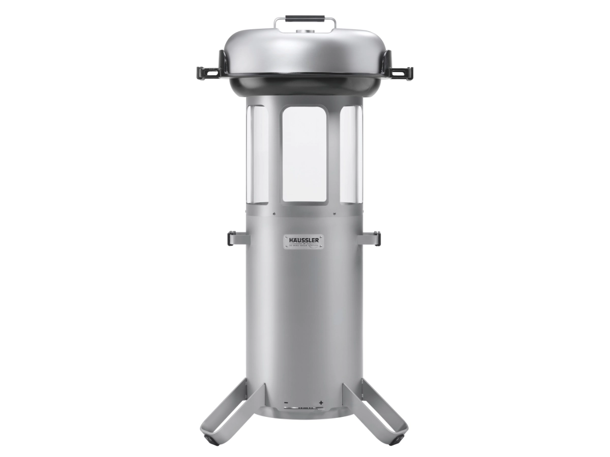 Der Häussler Pelletgrill mit Grillaufsatz und Deckel ist ein mobiler Pelletgrill aus Edelstahl mit Glasaufsatz in komfortabler Arbeitshöhe. Er wird mit Holzpellets befeuert und verbindet eine starke, schnell anliegende Flamme mit präziser Temperaturregelung. Durch den Glasaufsatz kann der Grundkorpus außerdem als stimmungsvolles Ambientelicht genutzt werden – so vereint das Gerät Feuerstelle und Grill in einem System.