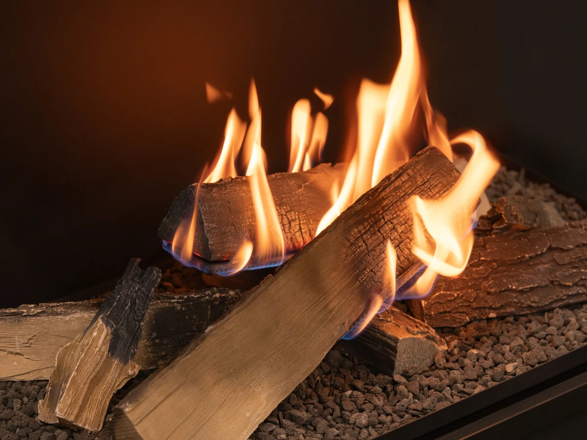 Die vormontierten Dekor-Holzscheite sitzen direkt im Flammenbereich und erzeugen die Anmutung eines klassischen Holzfeuers, profitieren aber von der sauberen BEV®-Verbrennung ohne Schornstein. Der lineare Brenner mit 990 mm Länge eignet sich sowohl für bestehende Kaminöffnungen als auch für maßgefertigte Einbauanlagen und Media-Walls, bei denen eine durchgehende Feuerlinie gewünscht ist.