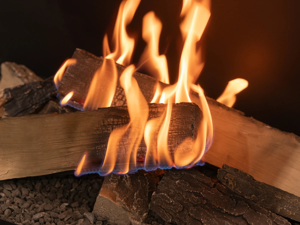 - Realistische Dekor-Holzscheite liegen direkt im Flammenbereich und erzeugen die Optik eines klassischen Holzkamins