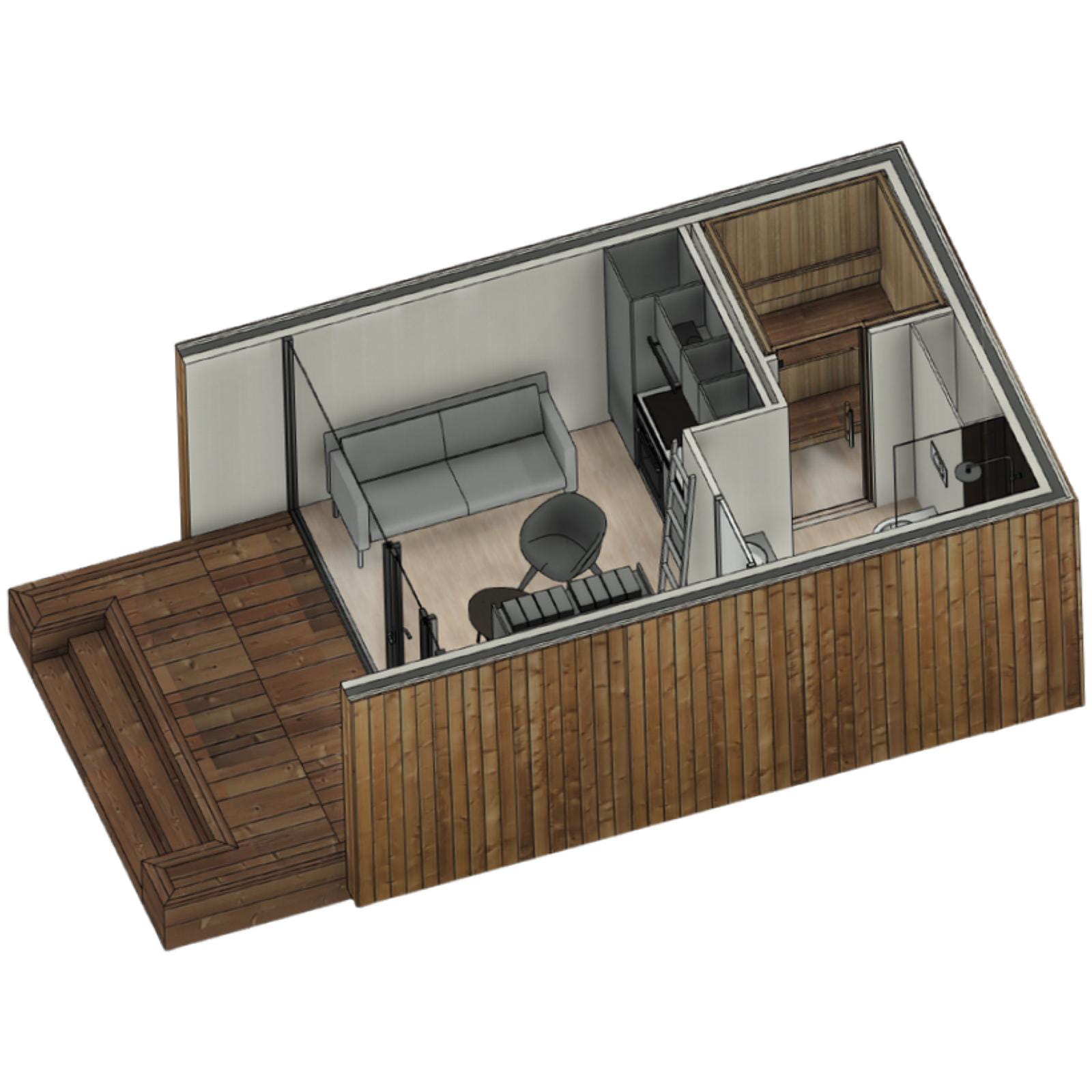 Erleben Sie den Charme des kompakten Wohnens mit unserer HAVEN Mini-Sauna – einem modernen und minimalistischen Ferienhaus, das für die ultimative Erholung konzipiert wurde. Entdecken Sie einen einzigartigen Rückzugsort, der die wohltuende Wärme einer Sauna mit der Ruhe eines Ferienhauses verbindet. Unsere HAVEN MINI-Sauna ist Ihr Pass zur ultimativen Entspannung inmitten der Natur.